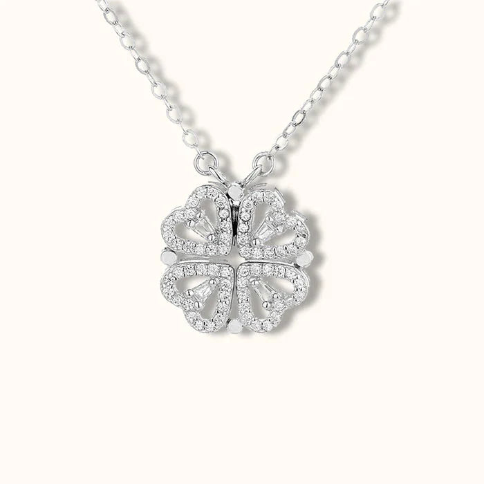 Basta abrir o colar para transformá-lo em 4 corações bonitos ou fechá-lo para um trevo fofo que lhe trará toda a sorte. Funciona com ímãs ocultos, porém fortes!