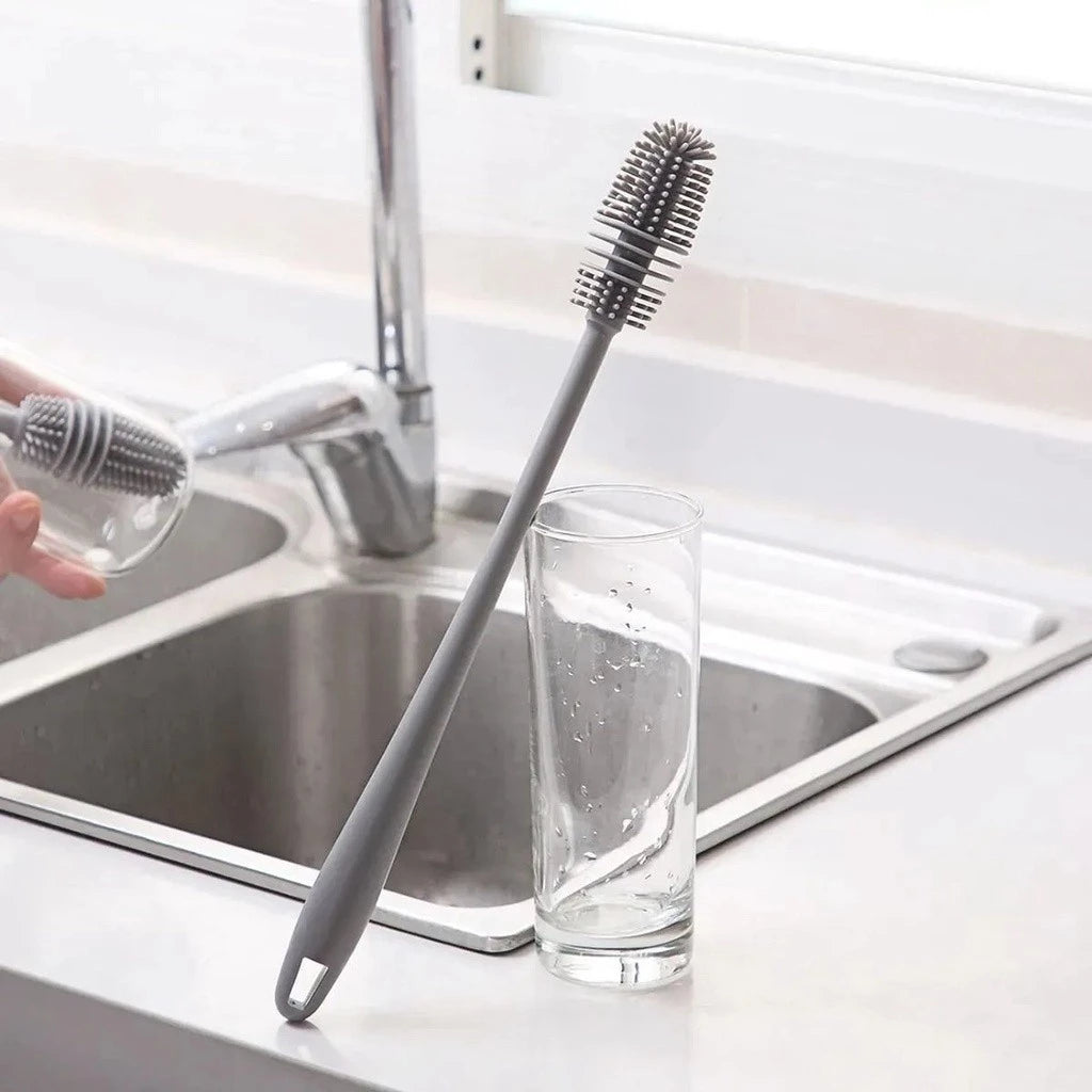 hega de machucar as mãos ou deixar sujeira acumulada nos cantinhos! A Escova de Silicone Multiuso foi projetada para proporcionar uma limpeza eficiente e delicada, garantindo que seus copos, garrafas, mamadeiras e jarras fiquem brilhando sem esforço. Com um design pensado para alcançar até os lugares mais difíceis, esta escova é o acessório indispensável na sua rotina de limpeza.