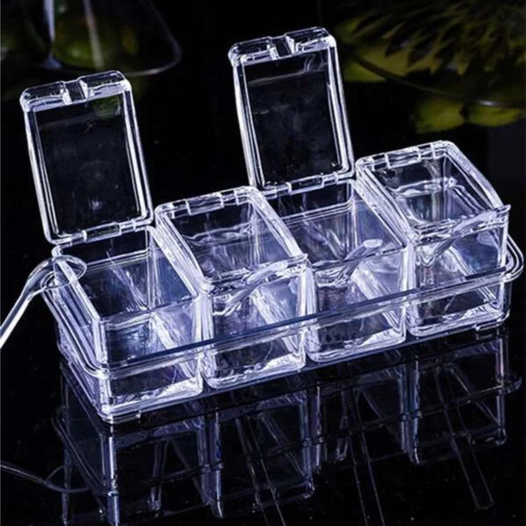 Transforme sua rotina culinária com esse prático e elegante kit organizador de temperos! Composto por quatro potes de plástico destacáveis, acomodados em uma bandeja compacta e funcional, este conjunto é ideal para quem busca praticidade, organização e um toque de charme na cozinha.