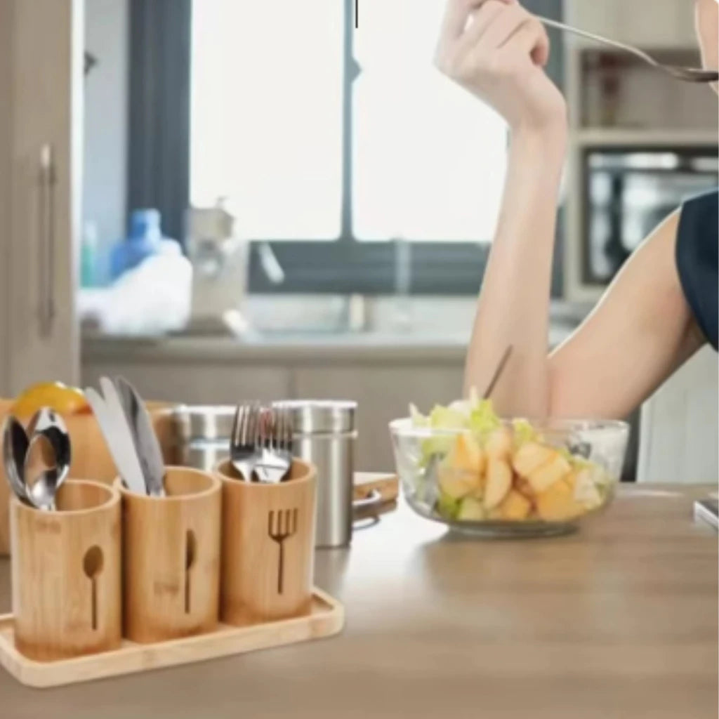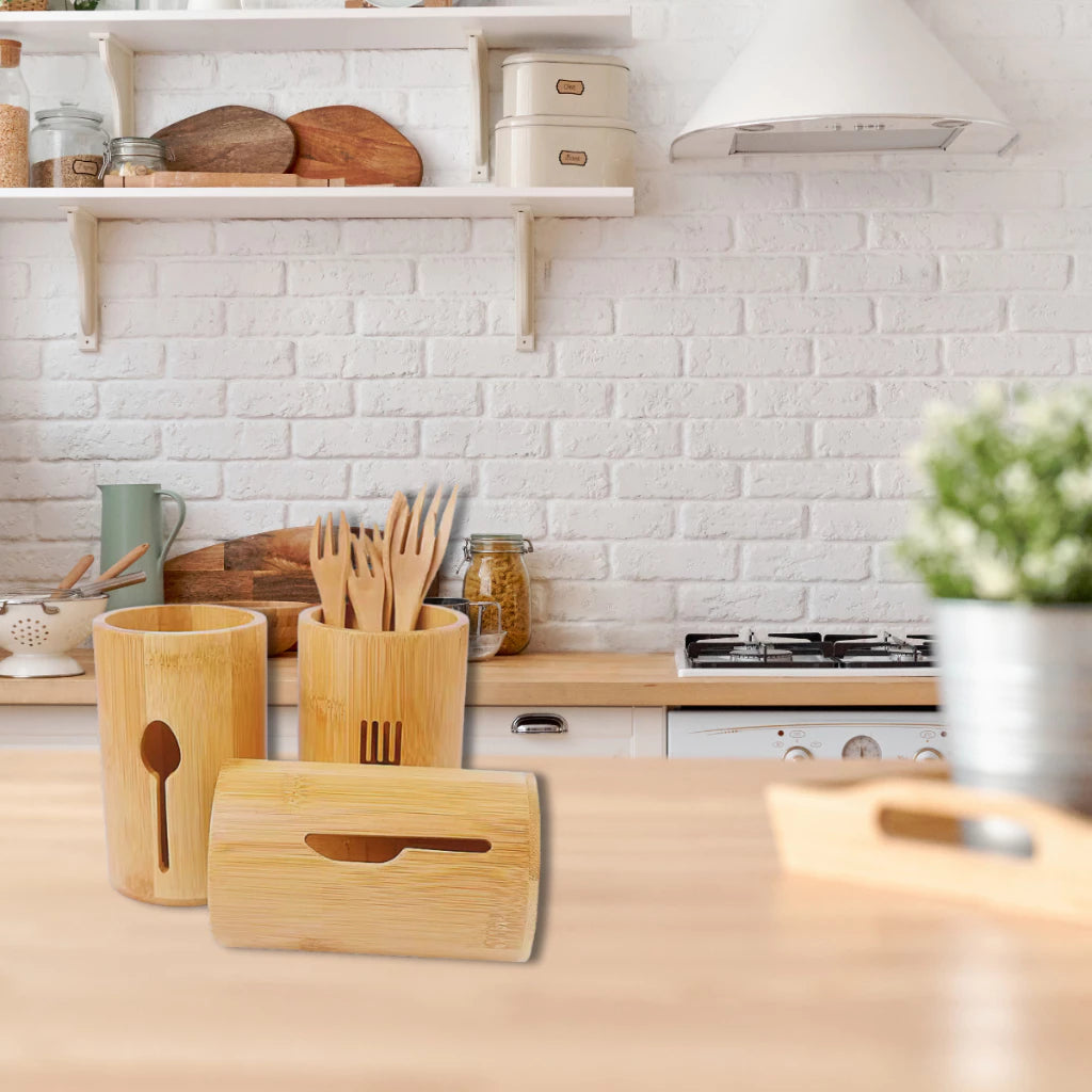 Mantenha seus utensílios organizados e ao alcance das mãos com o charme do nosso Porta-Talheres de Bambu! Feito de materiais naturais e duráveis, ele não só preserva o meio ambiente como também acrescenta um toque de elegância rústica à sua cozinha.